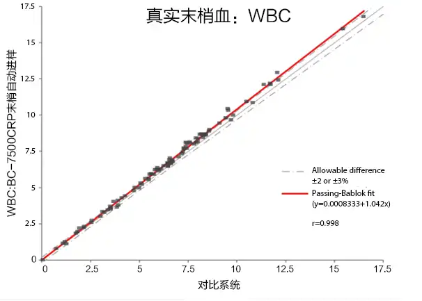 全自动末梢血检测结果与对照检测系统手工检测结果高度一致
