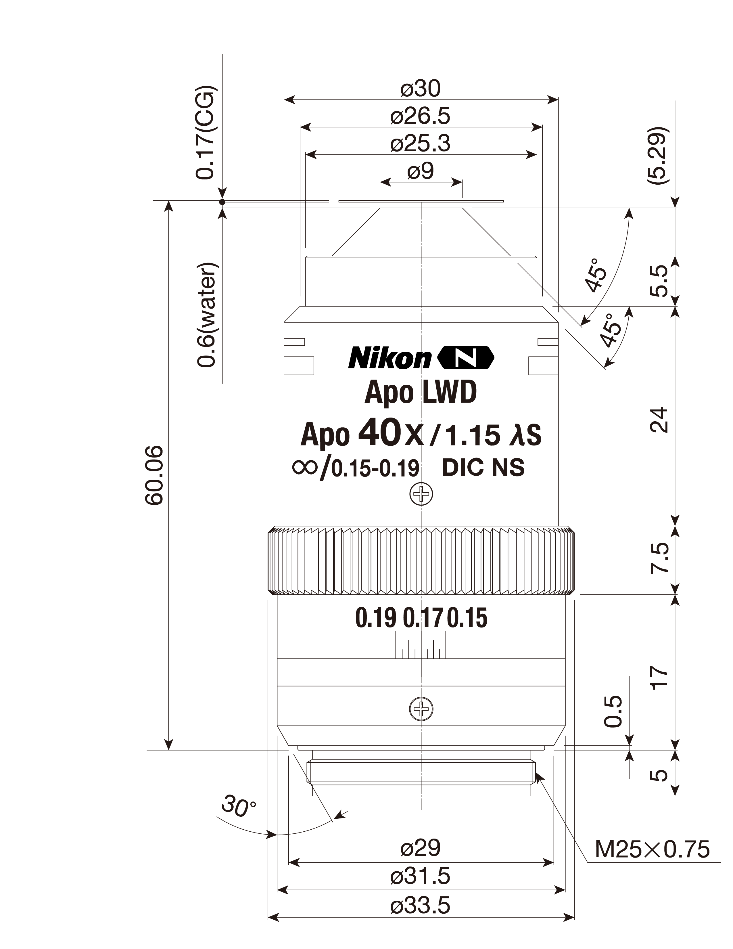尼康水浸物镜Apo LWD λ S 40XC WI NA 1.25 WD 0.2-0.16 mm